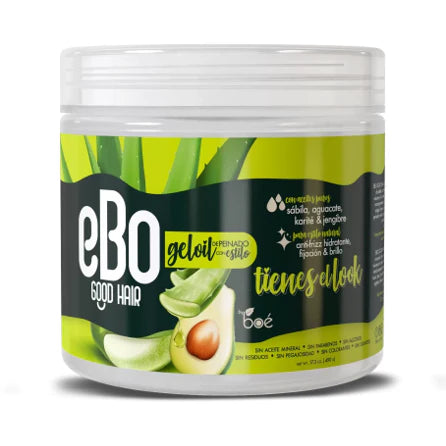 Ebo Gel stylish Gel Oil de Peinado con estilo: Es un producto con aceites puros de coco, argan, linaza y oliva que define, da volumen y fija tu estilo. Sus aceites acondicionan controlan el encrespamiento, doman mechas y cabellos rebeldes edges, flyaways y baby hairs.